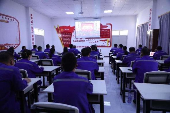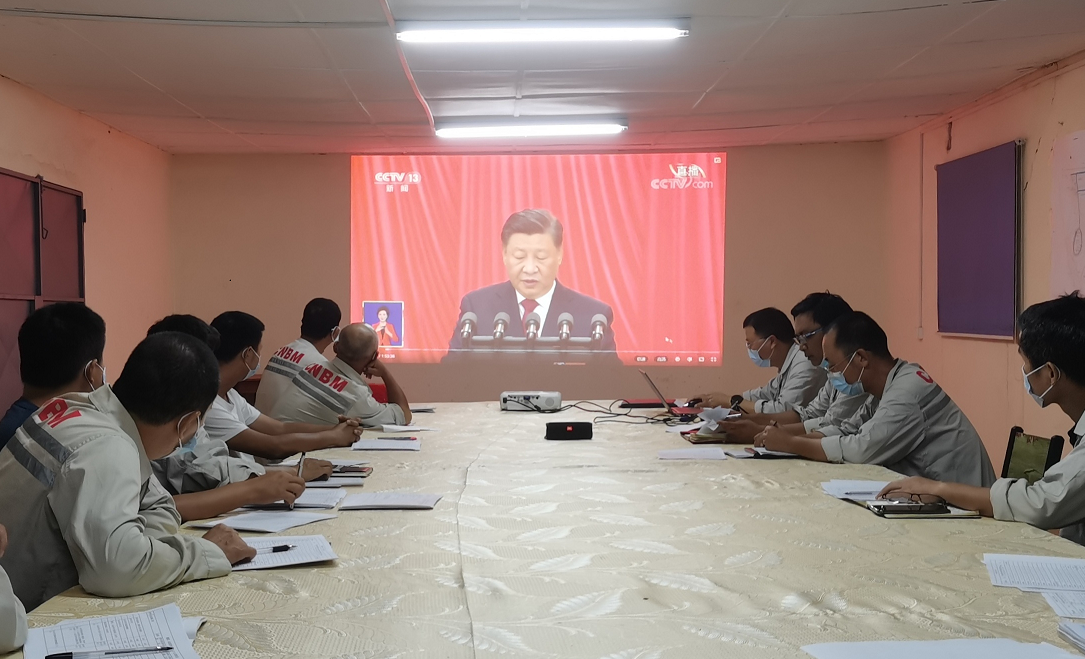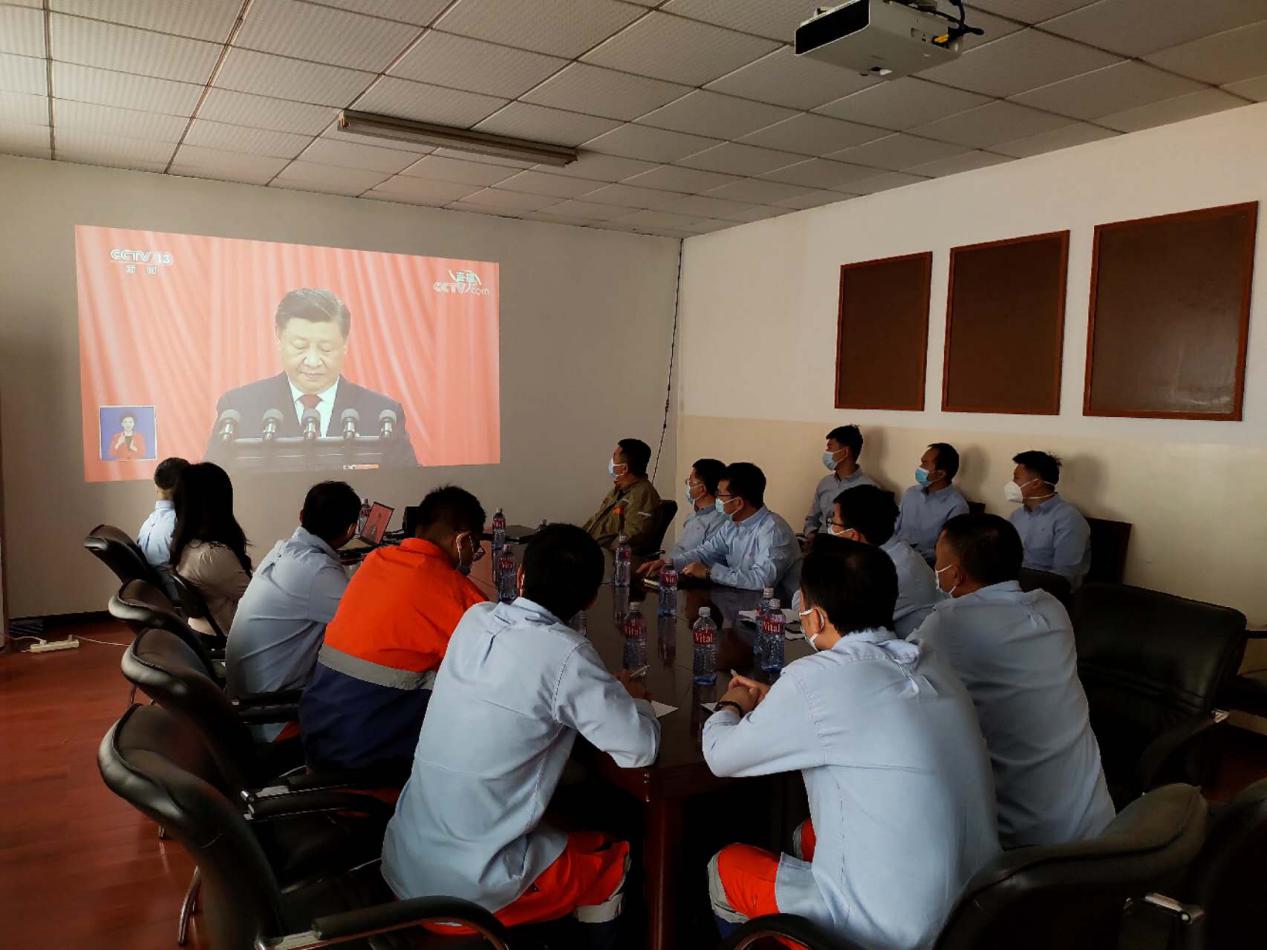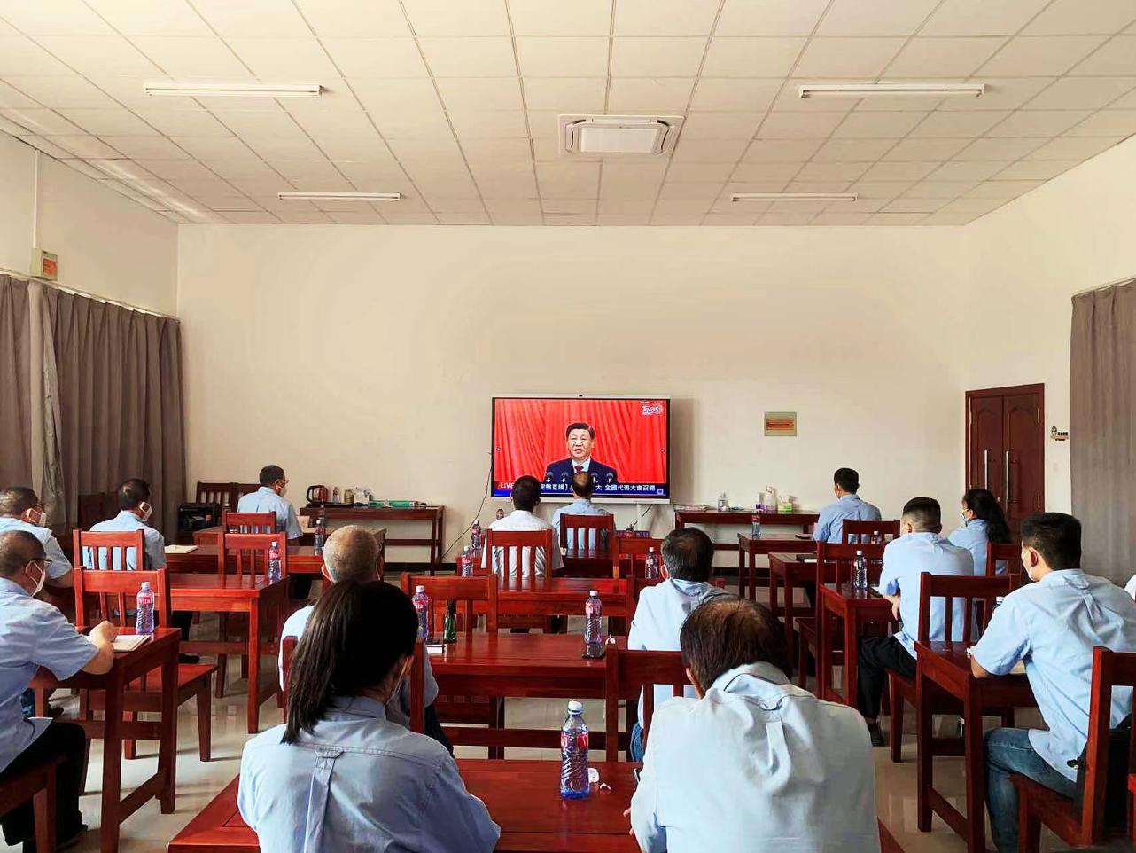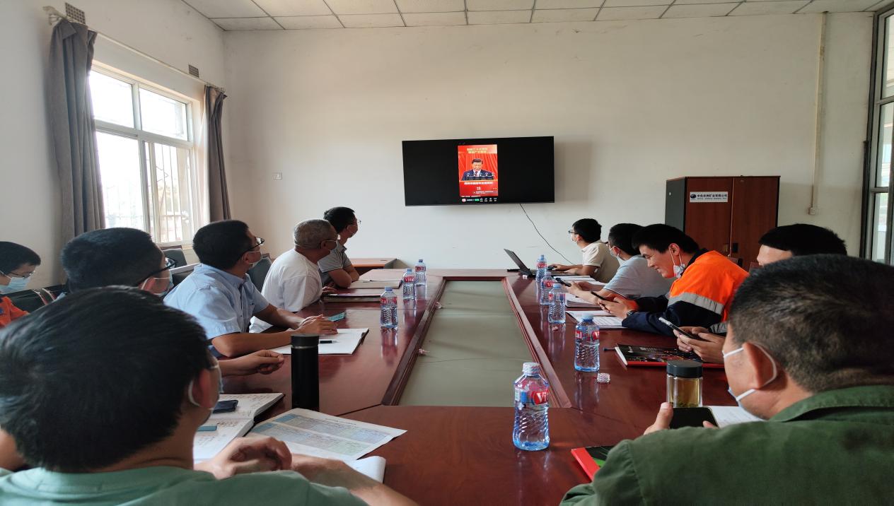 ![]() 中色鑫誠(chéng)巴依姆項(xiàng)目部收看現(xiàn)場(chǎng) |