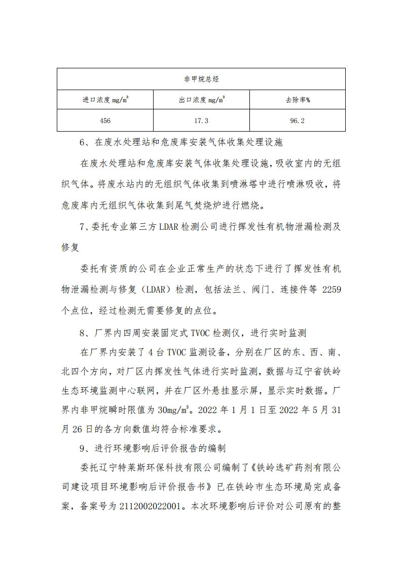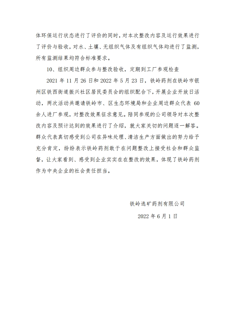 鐵嶺選礦藥劑有限公司典型案例生態環境問題 整改情況信息公開