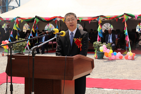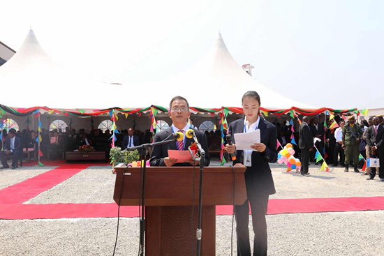中國(guó)駐贊比亞大使李杰在儀式上致辭